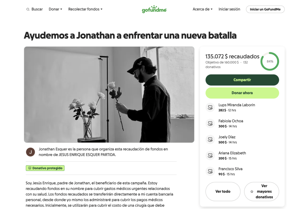 Aunque es posible cubrir los gastos médicos poco a poco, la situación requiere actuar de inmediato, y por eso su padre, Jesús Enrique, abrió una colecta solidaria a través de GoFundMe, la plataforma de recaudaciones en la que más personas confían: para reunir más rápido los fondos necesarios y asegurar que Jonathan reciba la atención médica a tiempo.