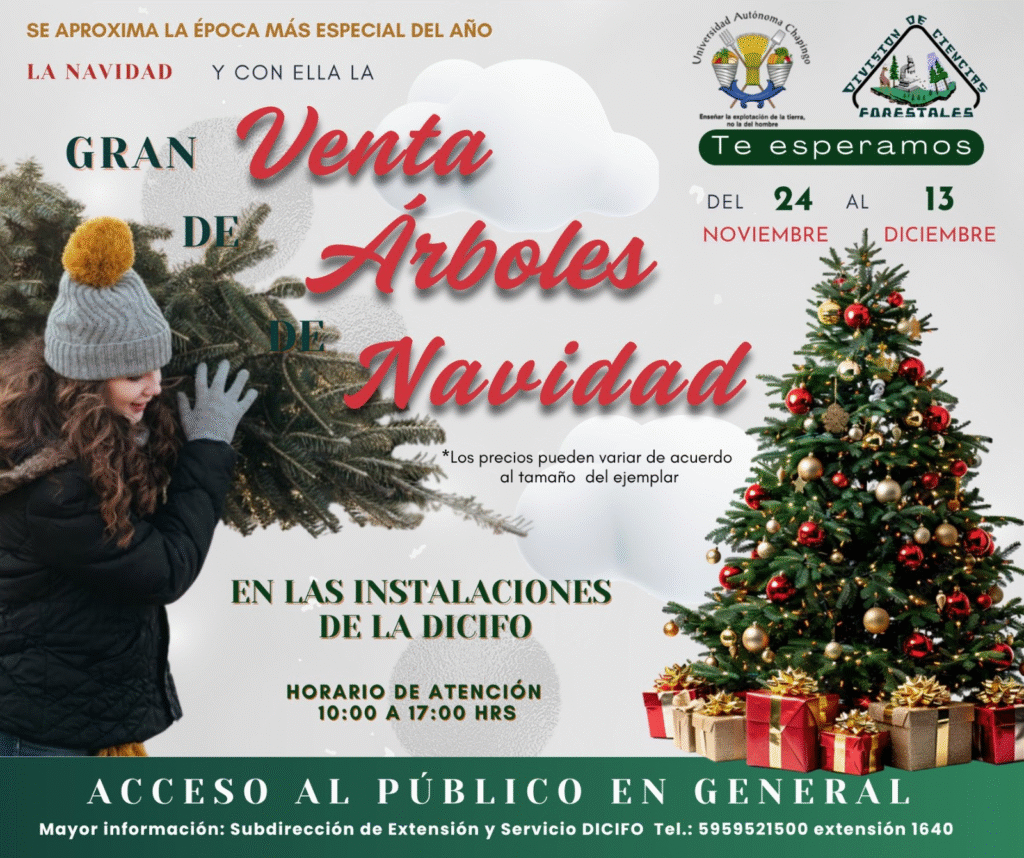 “La venta de árboles de Navidad tiene antecedentes en distintos periodos y ha sido impulsada históricamente por profesores de la DICIFO como una práctica formativa y de vinculación social. Después de la pausa obligada por la contingencia sanitaria por COVID-19, la venta de árboles navideños volvió en 2024 –bajo la dirección del M. C. David García Cíntora, Director de la División de Ciencias Forestales–, con un enfoque renovado de actividad formativa integral que combina educación, conservación y desarrollo rural”.