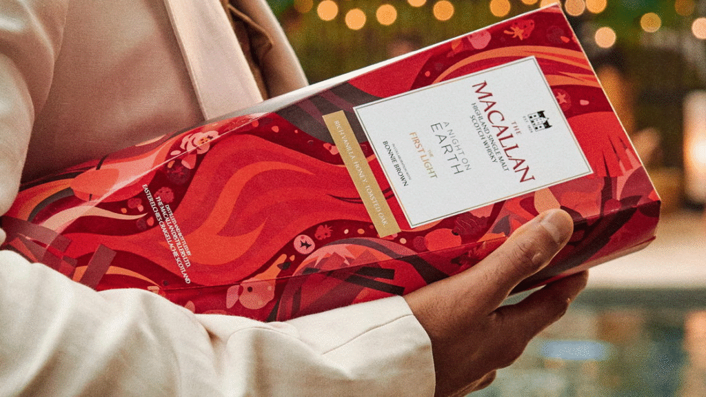 Cada año, las ilustraciones de las tres capas del empaque son creadas por un artista local, inspiradas en sus recuerdos y tradiciones favoritas de Año Nuevo. En esta ocasión, The Macallan celebra el espíritu festivo único del hemisferio sur, colaborando con la artista neozelandesa Bonnie Brown para reflejar sus memorias a través de esta edición especial. Sus evocadoras ilustraciones —inspiradas en barbacoas costeras, fogatas en la playa y las flores del Pōhutukawa— capturan la esencia de la conexión y la celebración mediante el color, la forma y la narrativa visual.