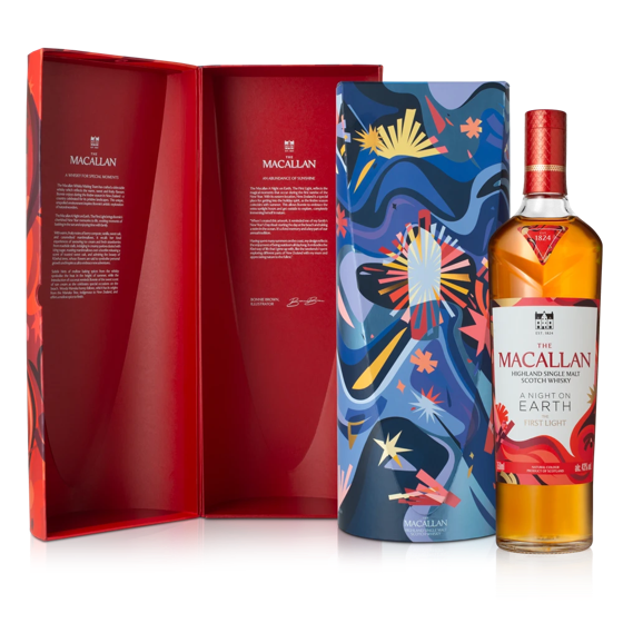 Estas obras se despliegan en tres escenas en el empaque —atardecer, celebración y primera luz—, reflejando el ciclo de la víspera de Año Nuevo en la región. Dado que en el hemisferio sur esta época se vive al aire libre, el color natural del whisky evoca la paleta natural del paisaje antípoda, capturando el espíritu fresco del aire libre, una pasión compartida entre The Macallan y Bonnie. El empaque invita al público a abrazar la renovación del Año Nuevo y continuar celebrando el espíritu de artesanía y creatividad que distingue a The Macallan.