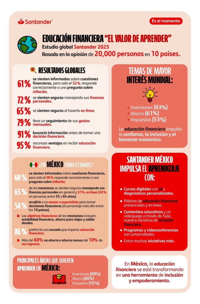 Este estudio confirma que la educación financiera ya no es un complemento, sino una necesidad para el futuro económico del país. Por ello, Santander México seguirá ampliando el alcance de sus programas para que cada vez más personas cuenten con las herramientas que les permitan tomar decisiones financieras más informadas y construir estabilidad financiera a largo plazo.