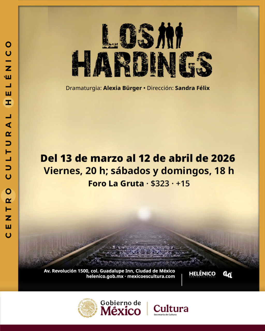Tres personas que comparten el mismo nombre, un mismo infortunio las interpela. Basada en la tragedia del descarrilamiento de un tren en Lac-Mégantic, en Quebec, Canadá, llega al Foro La Gruta: Los Hardings, una historia que nos recuerda que todos los días tomamos decisiones que reflejan el valor que le damos a la vida. Escrita por Alexia Bürger —con traducción de Humberto Pérez Mortera — y dirigida por Sandra Félix, estará en escena del 13 de marzo al 12 de abril de 2026.