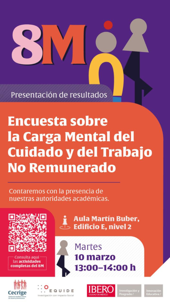 En el marco del 8 de marzo, Día Internacional de las Mujeres, el Centro de Estudios Críticos de Género y Feminismos (CECRIGE) de la Universidad Iberoamericana Ciudad de México presentará los avances de la investigación Carga mental en el trabajo de cuidados no remunerados en México, un estudio que busca visibilizar una dimensión poco reconocida del cuidado: la responsabilidad constante de planificar, anticipar, organizar y supervisar las necesidades de otras personas.