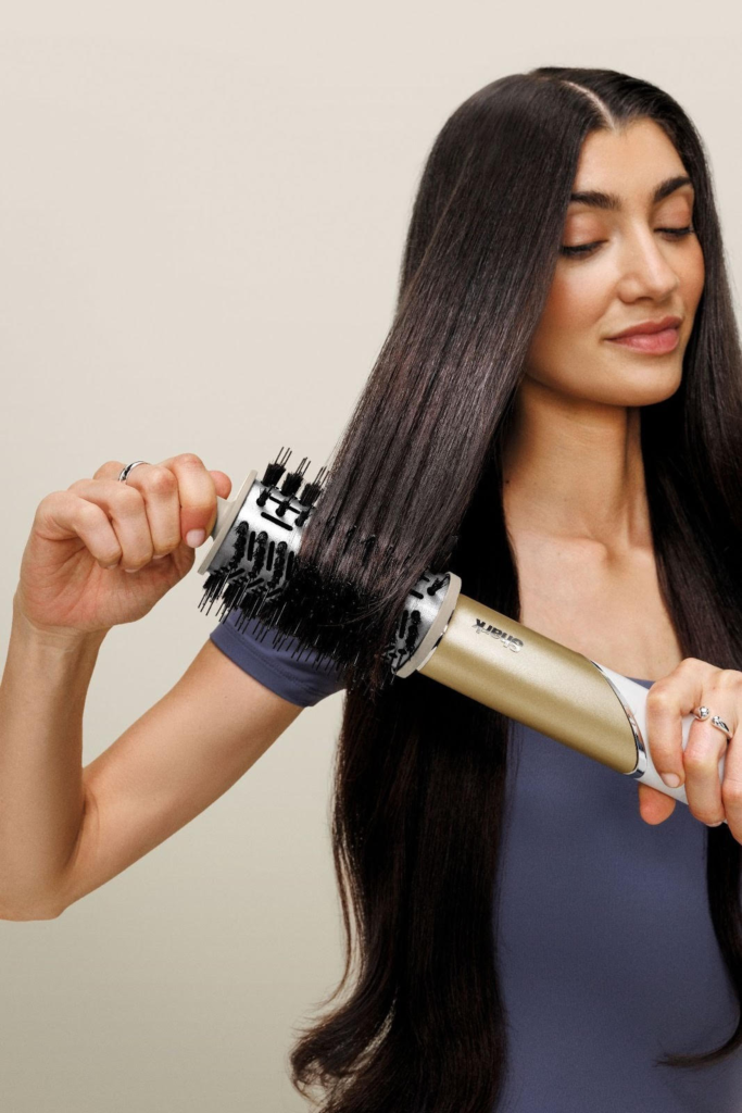 Ahora, si eres más de volumen tipo salón, entonces el match es con Glossi™. (Herramienta caliente y abrillantador con aire): La cerámica con control de calor y el flujo de aire de alta velocidad ofrecen un tiempo ultracorto de secado para lograr peinados con el máximo brillo y sin frizz. Suaviza, alisa y crea movimiento en todas las texturas y tipos de cabello. Este cepillo redondo te permite hacerte un blowout mientras secas tu cabello —desde húmedo o incluso en seco para retoques— logrando cuerpo, movimiento y un brillo espectacular que dura hasta 24 horas.
