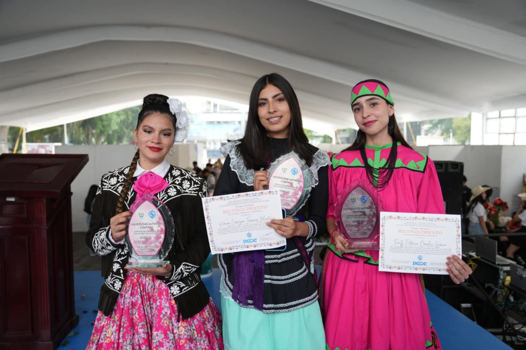 Luego del recuento de flores, el Presidente de la Coordinación de Asociaciones de los Estados (CAE), David Barrios Muñoz, originario del estado de Puebla, anunció los nombres de las portadoras favoritas en la edición 2026 del Paseo Floral de la Universidad Autónoma Chapingo. El primer lugar fue para alumna Emily Patricia Ornelas García, del estado de Chihuahua; Karina Terronez Martínez, de Durango, segundo lugar y Natalia Urbina Abundiz, de Tamaulipas, en la tercera posición.