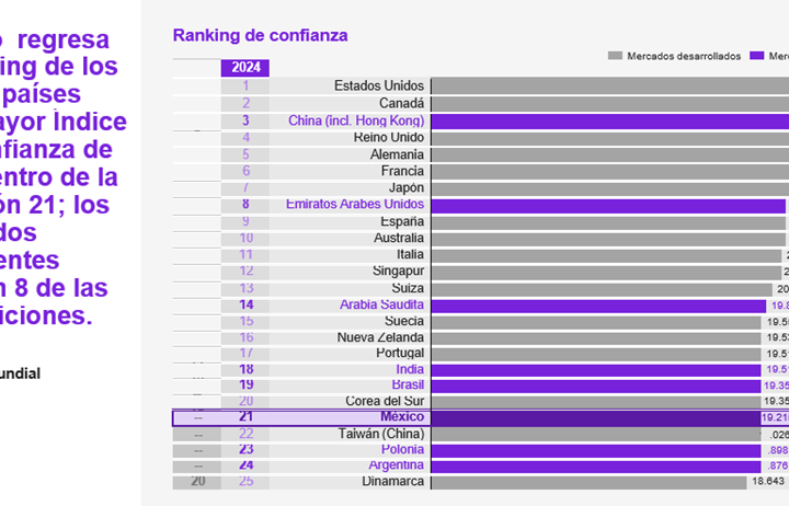 Abril de 2024 (Washington, D.C.) México vuelve a meterse al top 25 en la posición 21 después de haber desaparecido...